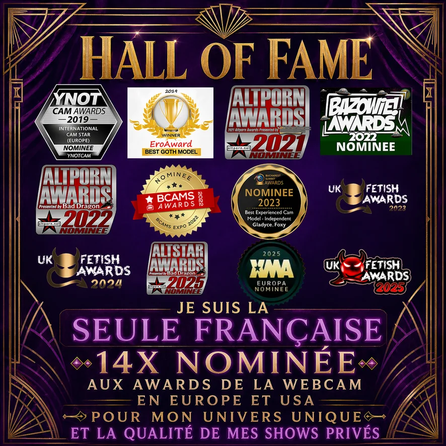 🏆 14 fois nominée aux Awards de la Webcam aux Etats-Unis et en Europe, pour mon univers unique et la qualité de mes shows.